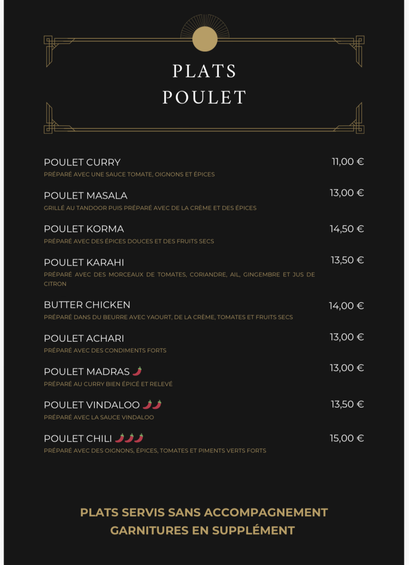 Fondé sur une passion profonde pour les saveurs de l'Inde, Le Punjab est né de l'envie de partager l'essence de cette cuisine millénaire. Notre équipe dévouée met tout son cœur à créer des plats qui racontent une histoire, en utilisant des ingrédients frais et des épices sélectionnées avec soin.
